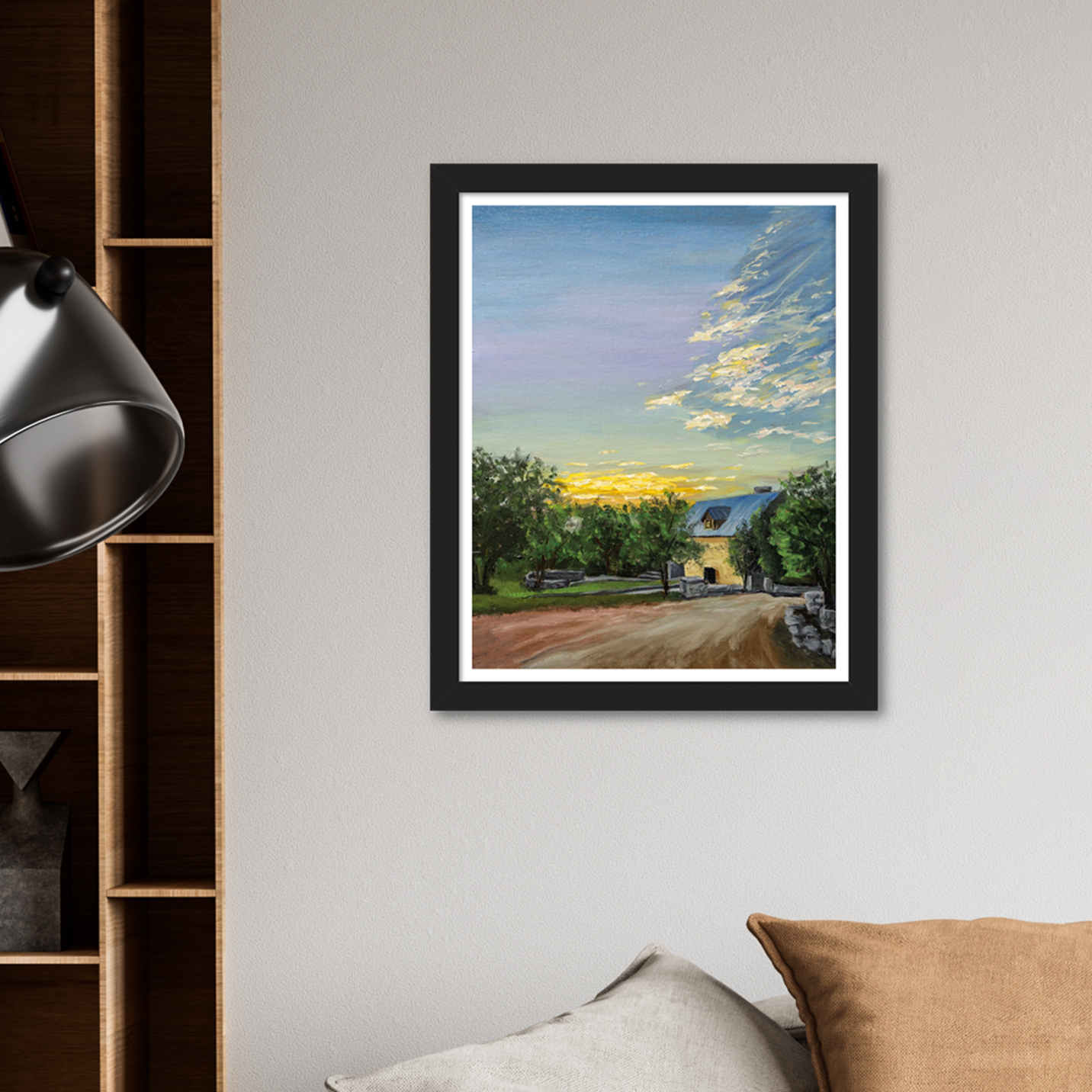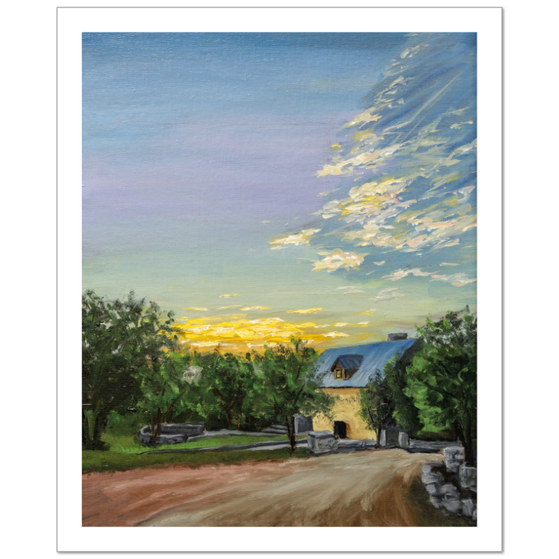 Inspired by the evening light at Riven Rock in the Texas Hill Country, this painting captures the quiet glow of sunset settling across the hills — a moment of warmth and stillness that invites you to pause and breathe.